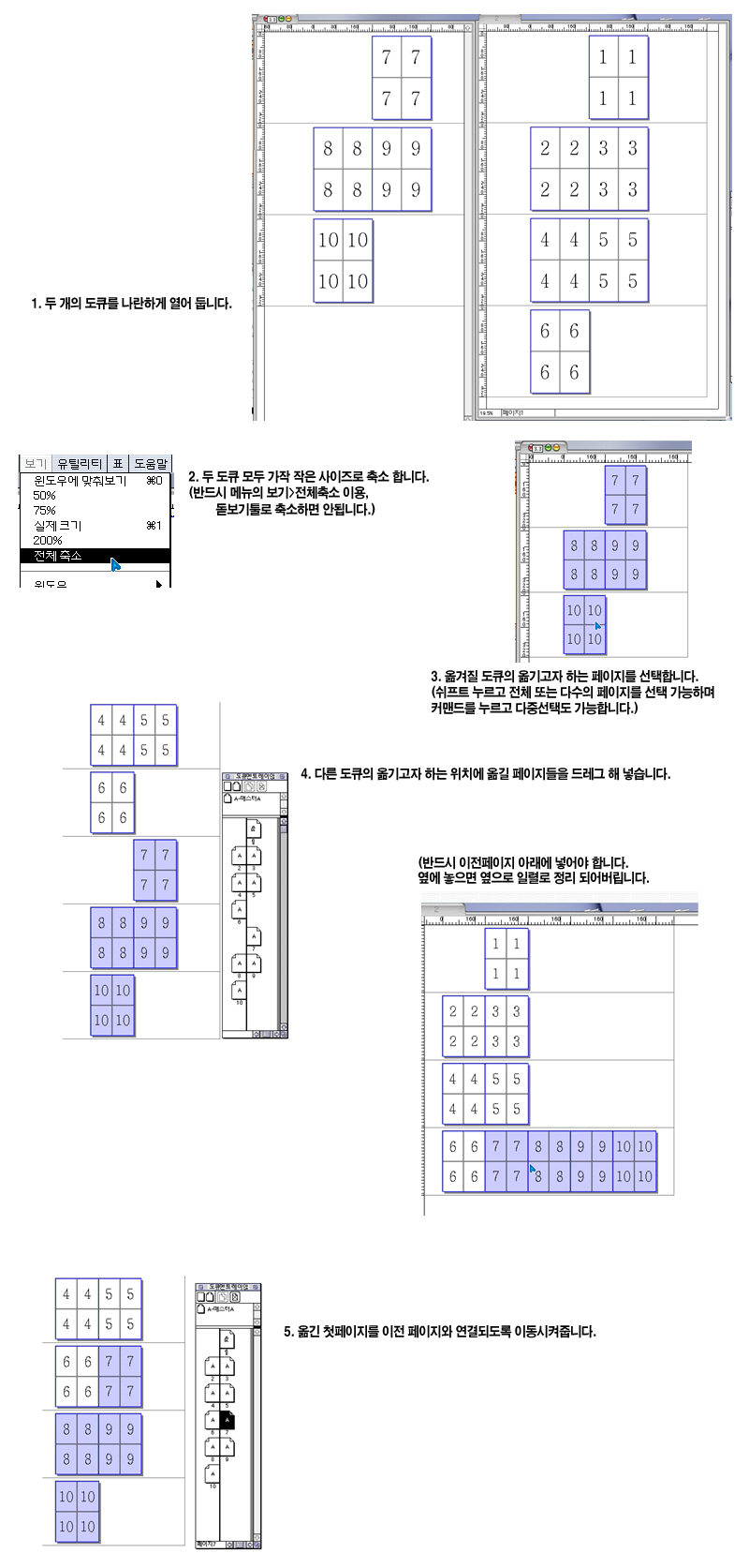 전체 축소하고 도큐멘트 두개 나란히 놓구 시프트 해서 두 면을 옮겼는데요 다른건 다 가는데 연결된 글 박스만 안가네요...왜 그런지 촘!! 알려주세요~~*